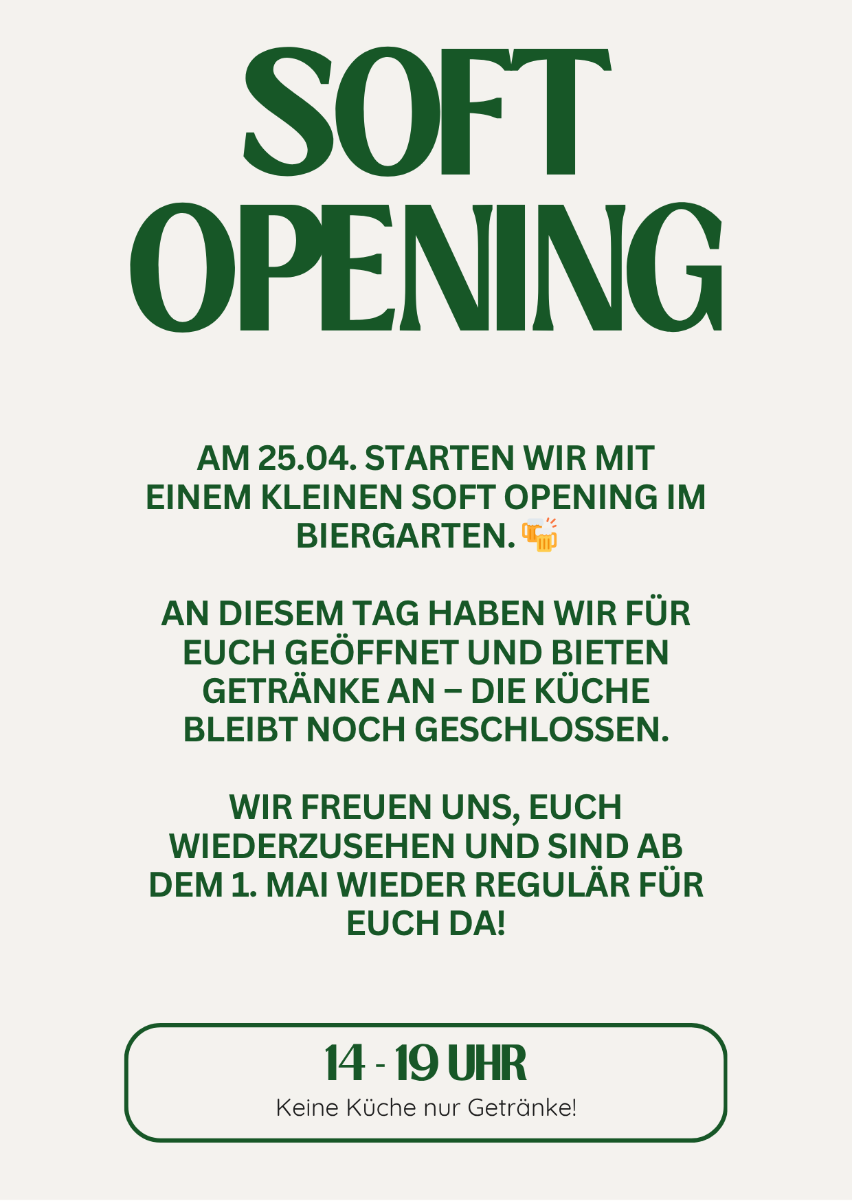 Am 25.04. starten wir mit einem kleinen Soft Opening im Biergarten. 🍻